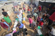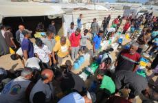 نازحون يصطفون أمام تكية في غزة بحثاً عن وجبة غداء وسط تفاقم المجاعة بشكل كارثي في القطاع المحاصر 19 يوليو 2025