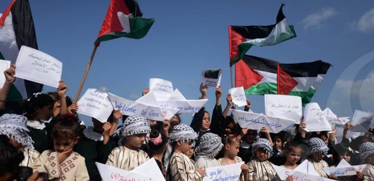 وقفة للأطفال ترحيباً بسفينة أمل وزيتونة لفك الحصار
