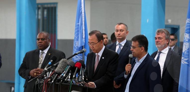 المؤتمر الصحفي لـ بان كي مون أمين عام الأمم المتحدة خلال زيارته لغزة صباح اليوم ،