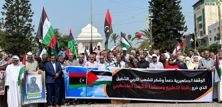 فصائل العمل الوطني والإسلامي تنظم وقفة جماهيرية دعماً وشكراً للشعب الليبي الشقيق الذي خرجَ رفضاً للتطبيع ومساندةً للشعب الفلسطيني
