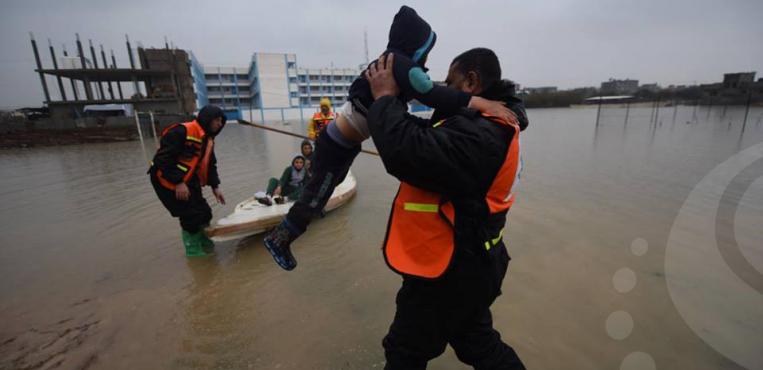 المنخفض الجوى يشل الحياة ويغرق منازل المواطنين فى رفح