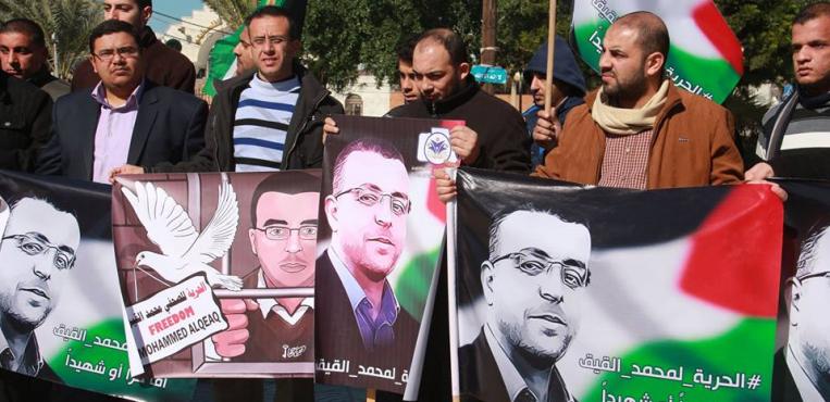 منتدى الإعلامين ينظم وقفة تضامنية مع الصحفى المضرب عن الطعام محمد القيق فى غزة
