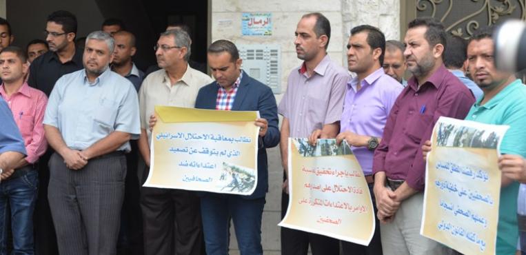 وقفة للمكتب الإعلامى الحكومى بغزة تضامناً مع الصحافين