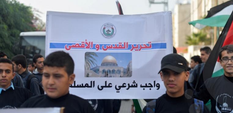 مسيرة لوزارة الأوقاف فى غزة دعماُ لانتفاضة القدس