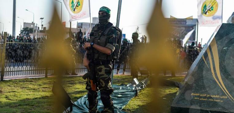 عرض عسكرى لكتائب القسام خلال إفتتاح النصب التذكاري لشهداء وحدة الضفادع البشرية بميناء غزة