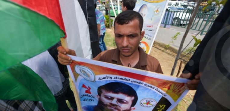 مسيرة لجنة القوى الوطنية والإسلامية فى يوم الاسير الفلسطينى امام مقر الصليب الاحمر فى غزة 16 ابريل 2015