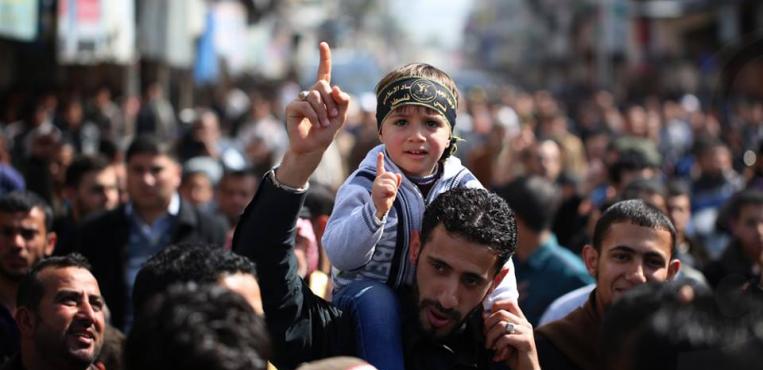 شباب من غزة يغلقون مكاتب مؤسسات أمريكية احتجاجا على قتل 3 مسلمين على خلفية دينية قبل أيام 16 فبراير 2015