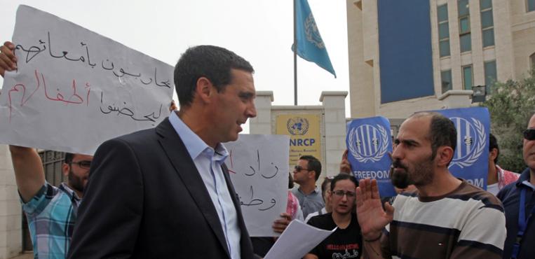 نشطاء يغلقون مقر الامم المتحدة في رام الله احتجاجاً على سياستها في قضية الأسرى المضربين