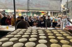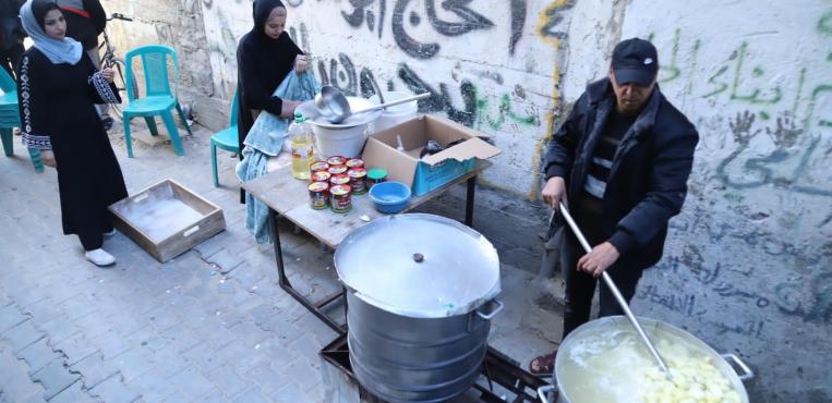 الشاب أمجد المجدلاوي ينفذ مبادرة شخصية بالتجول في احياء النصيرات ليطهو طعام الافطار كل يوم في منطقة وتوزيعه على عامة الناس مجانا طوال شهر رمضان.