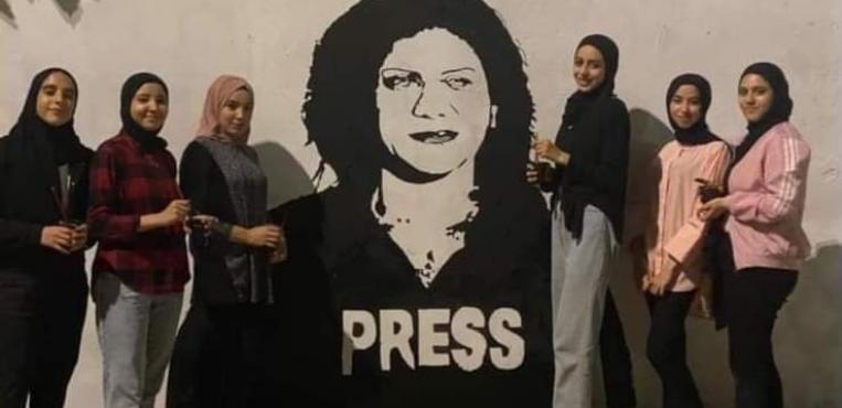 الاتحاد العام للهيئات الشبابية ينضم وقفة ورسمة جدارية تنديدا باستهداف الصحفية شيرين أبو عاقلة في مدينة غزة 12 مايو 2022
