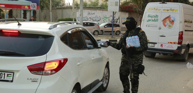 جنود سرايا القدس محور تل الهوا والصبرة-لواء غزة يوزعون التمر والماء على المتأخرين عن موائد الإفطار على الطرقات