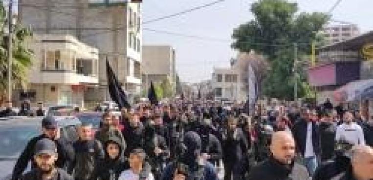 من تشيـيع جثماني الشابين عبدالله الحصـري وشادي نجـم من مخيم جنين، اللذان ارتقيا برصـاص قوات الاحـتلال، فجر اليوم