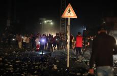 مواطنين يتفقدون منازلهم التي دمرها الاحتلال الاسرائيلي وقت غروب الشمس شمال قطاع غزة