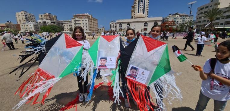 طائرات ورقية تحمل أسماء الشهداء الأطفال في غزة