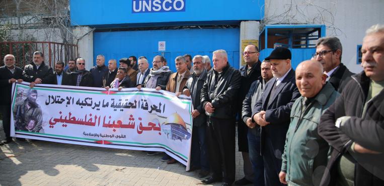 القوى الوطنية والاسلامية تنظم وقفة تحت عنوان المحرقه الحقيقية ما يرتكبه الاحتلال من مجازر بحق شعبنا الفلسطيني