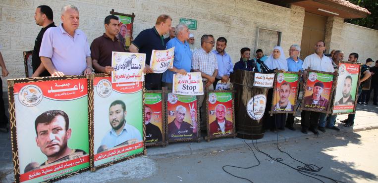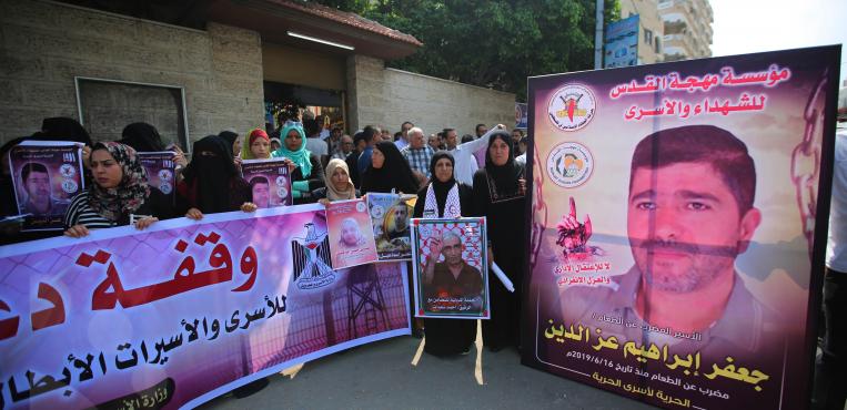 "مهجة القدس" تنظم وقفة تضامنية مع الأسرى والأسيرات في سجون الاحتلال الإسرائيلي، أمام مقر الصليب الأحمر في غزة