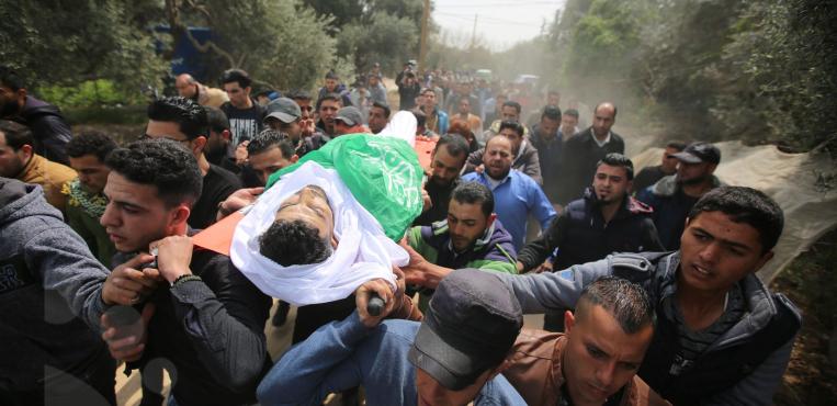 تشييع جثمان الشهيد الطفل سيف الدين ابو زيد 15 عام الذى اسشتهد خلال مسيرات العودة علي حدود قطاع غزة 07 مارس 2019