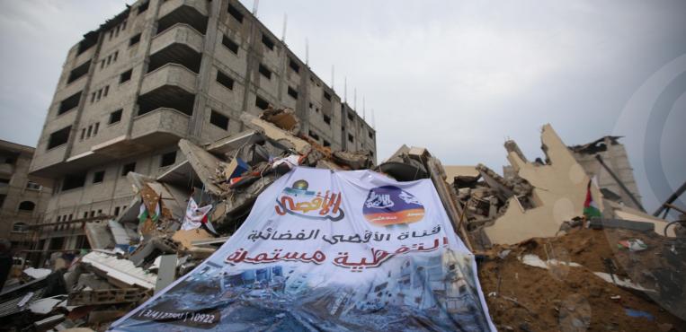 أثار القصف الاسرائيلي على أبراج سكنية من قبل الطيران الاسرائيلي " فندق الأمل واليازجي وفضائية الأقصي " 17 نوفمبر 2018
