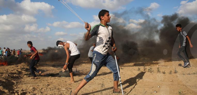 مواجهات بين الشبان وقوات الاحتلال الاسرائيلي على حدود غزة بجمعه متحدون من أجل إسقاط صفقه القرن 06 يوليو 2018