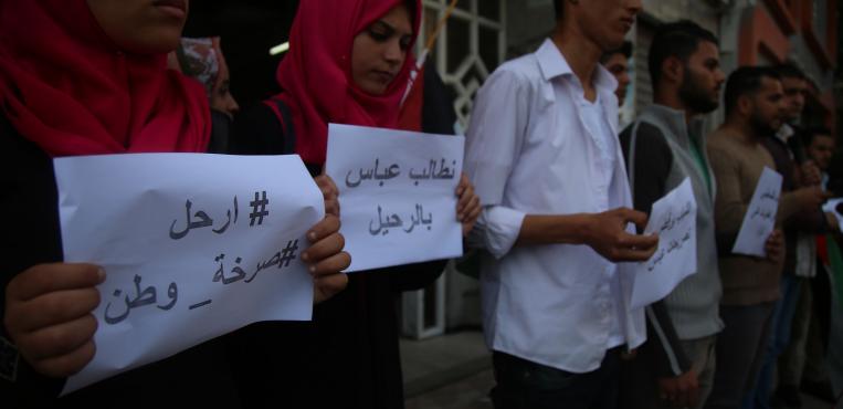 مجالس طلبة الجامعات بغزة تنظم وقفة استنكار لاعتقال رئيس مجلس طلاب جامعة بير زيت عمر كسوانى 12 مارس 2018