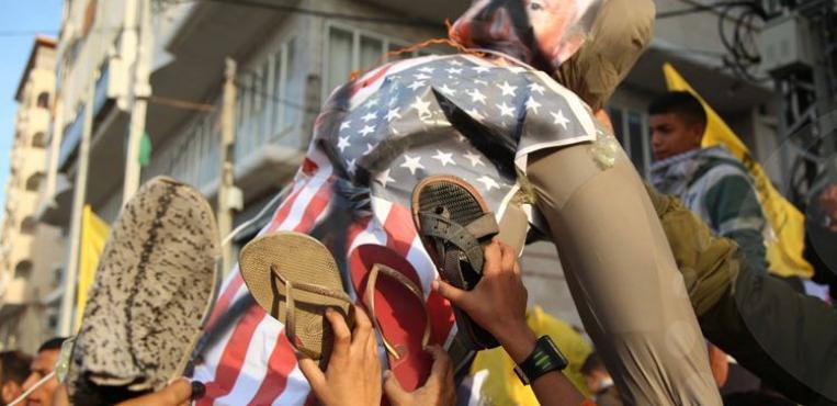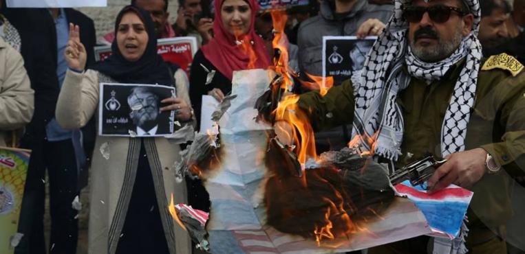 متظاهرون يشعلون الإطارات في شوارع قطاع غزة احتجاجًا على قرار ترامب بنقل السفارة الأمريكية للقدس 07 ديسمبر 2017