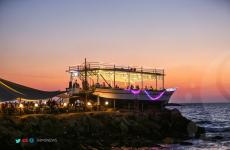 مركب صيد داخل بحر غزة يشكل لوحة فنية بغزة