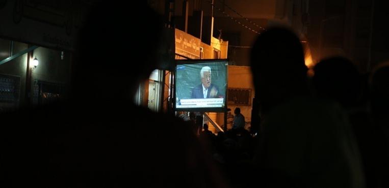 تجمع المواطنين لمشاهدة خطاب رئيس السلطة محمود عباس بغزة