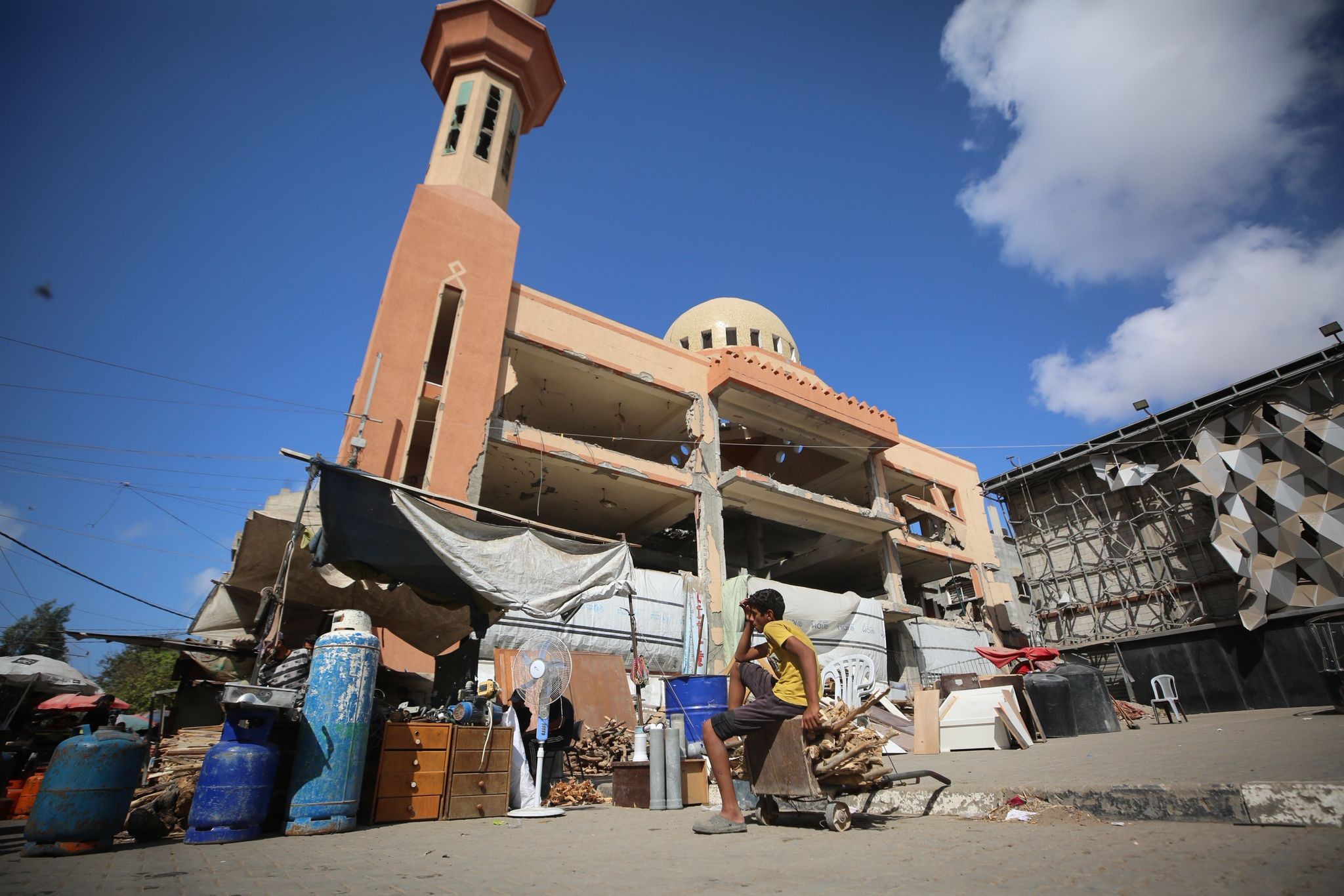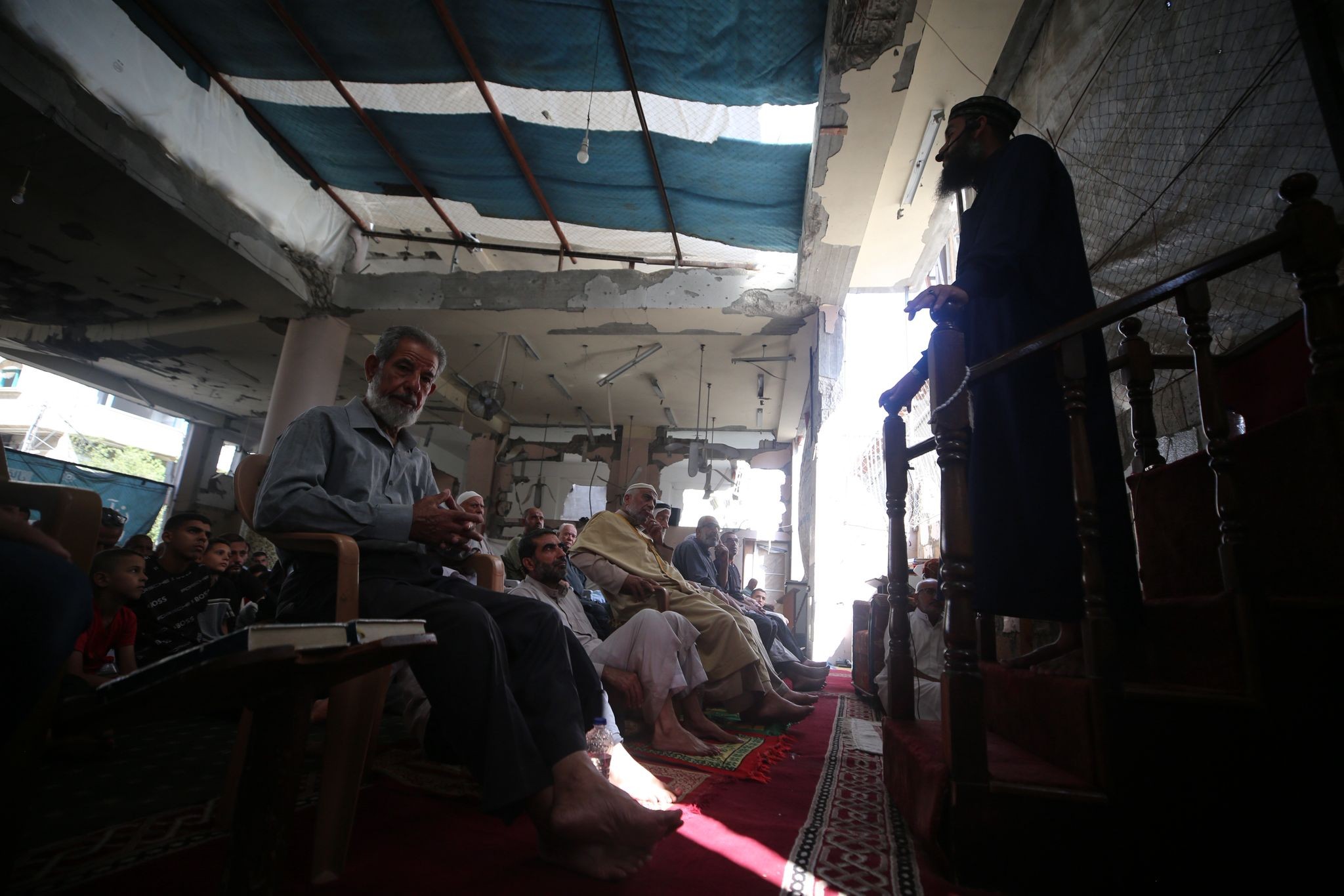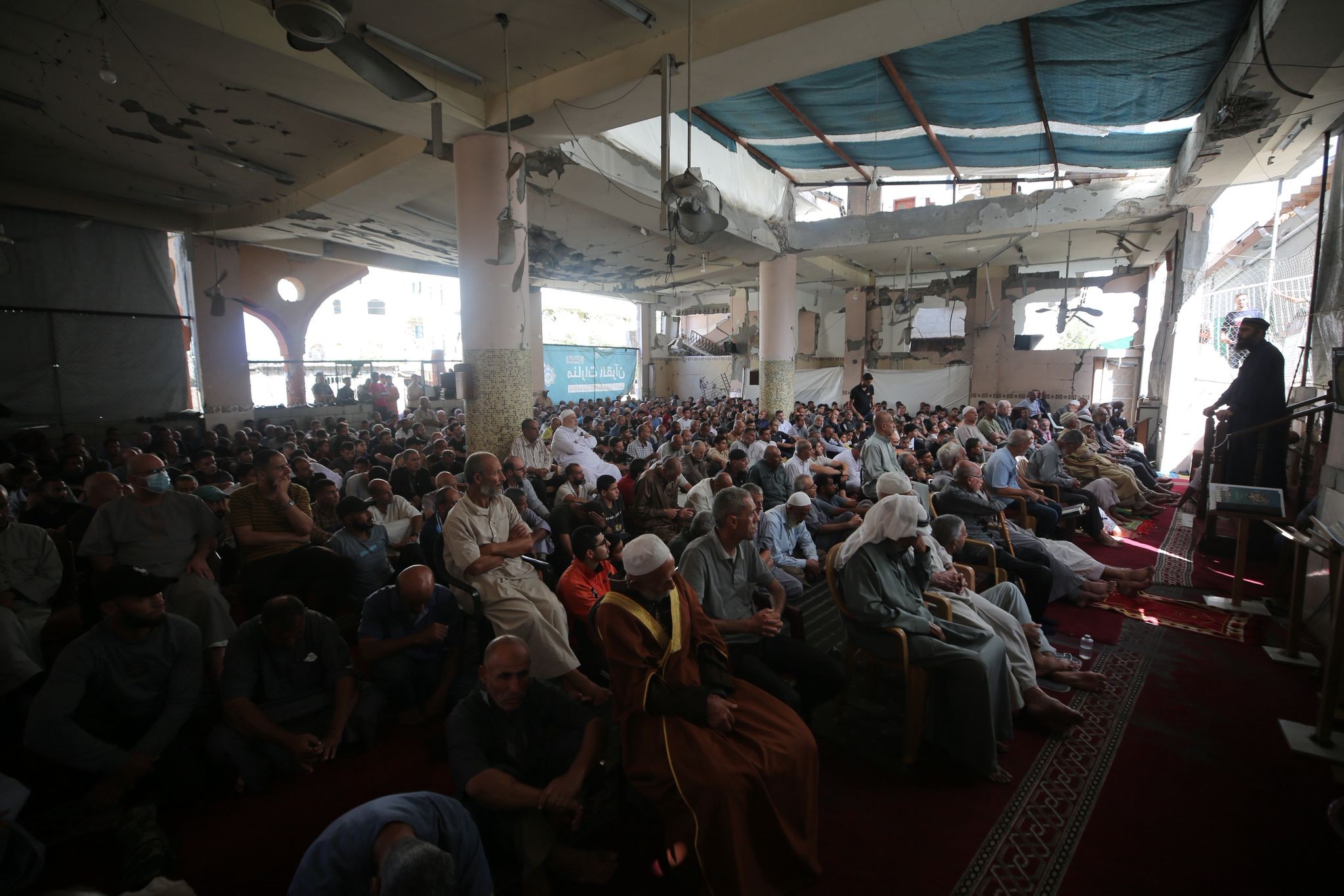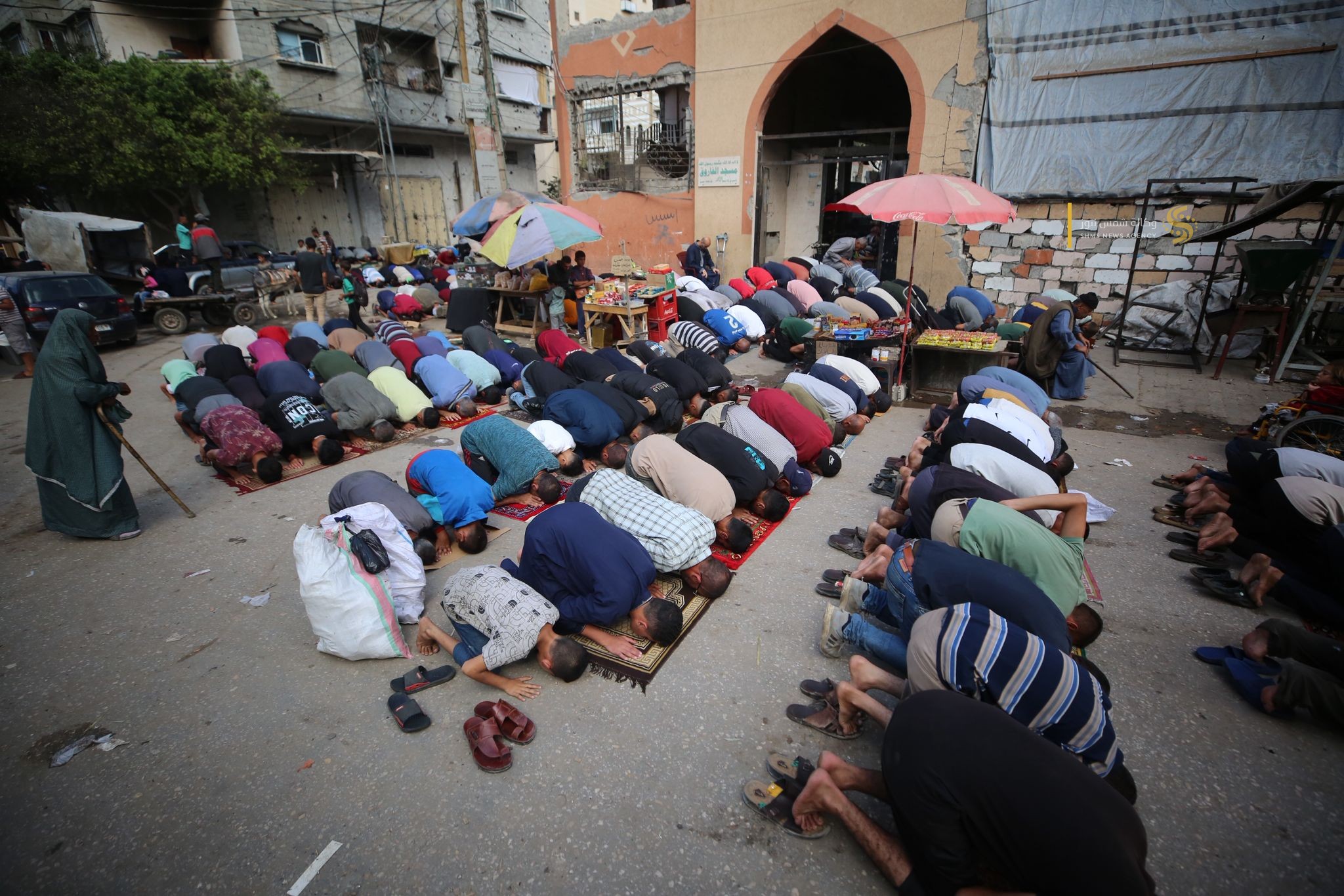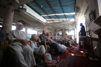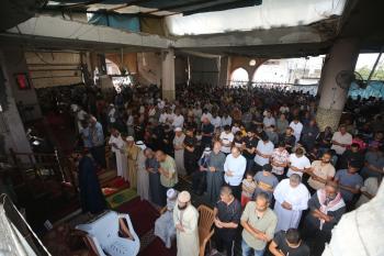 صلاة الجمعة على انقاض مسجد الفاروق جنوبي قطاع غزة