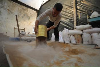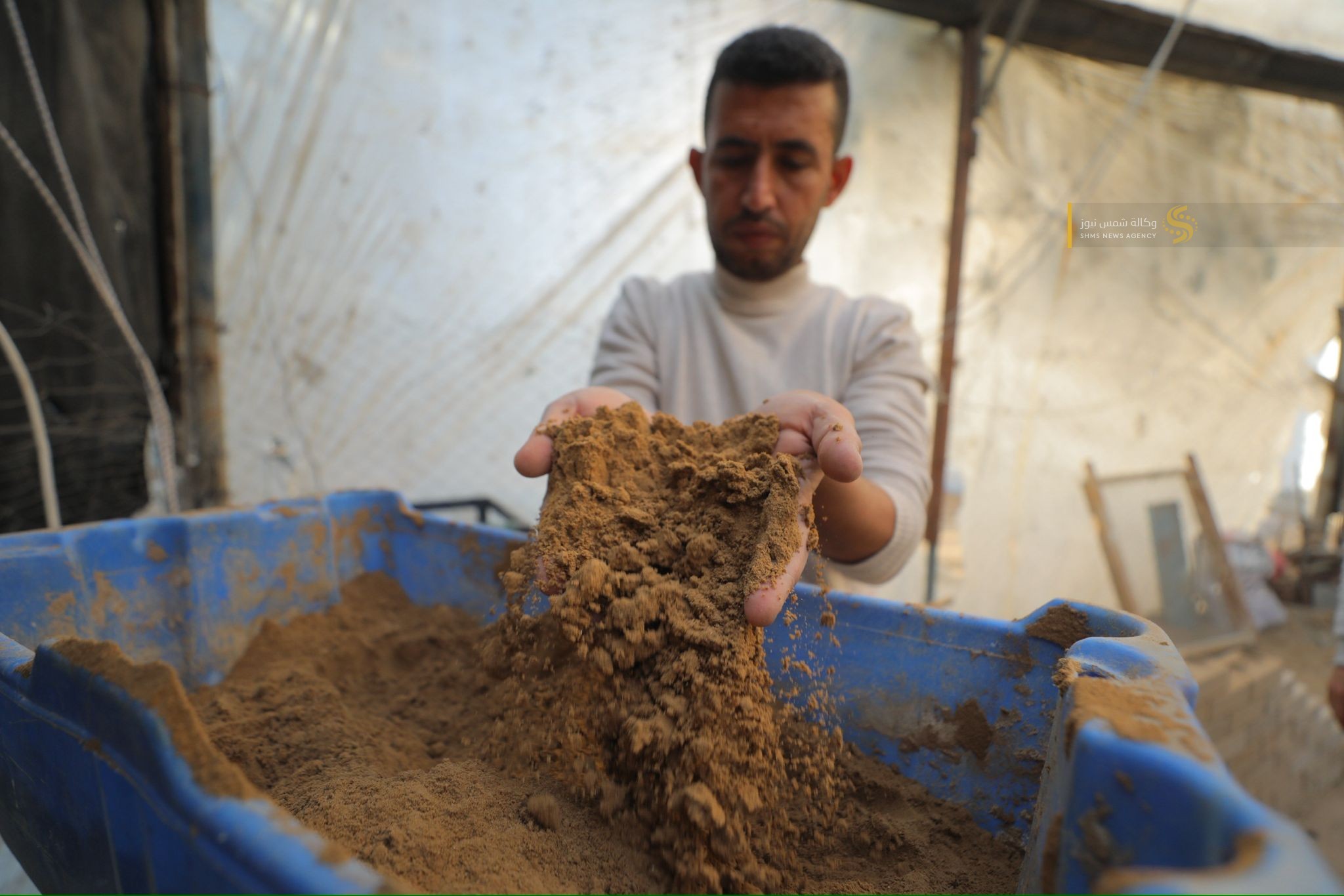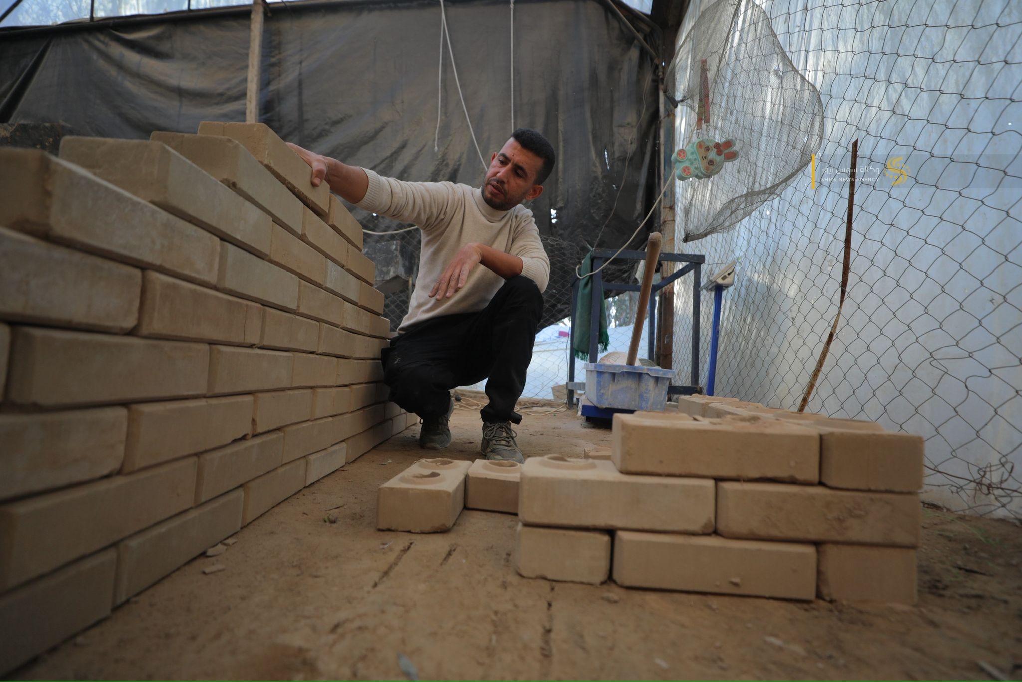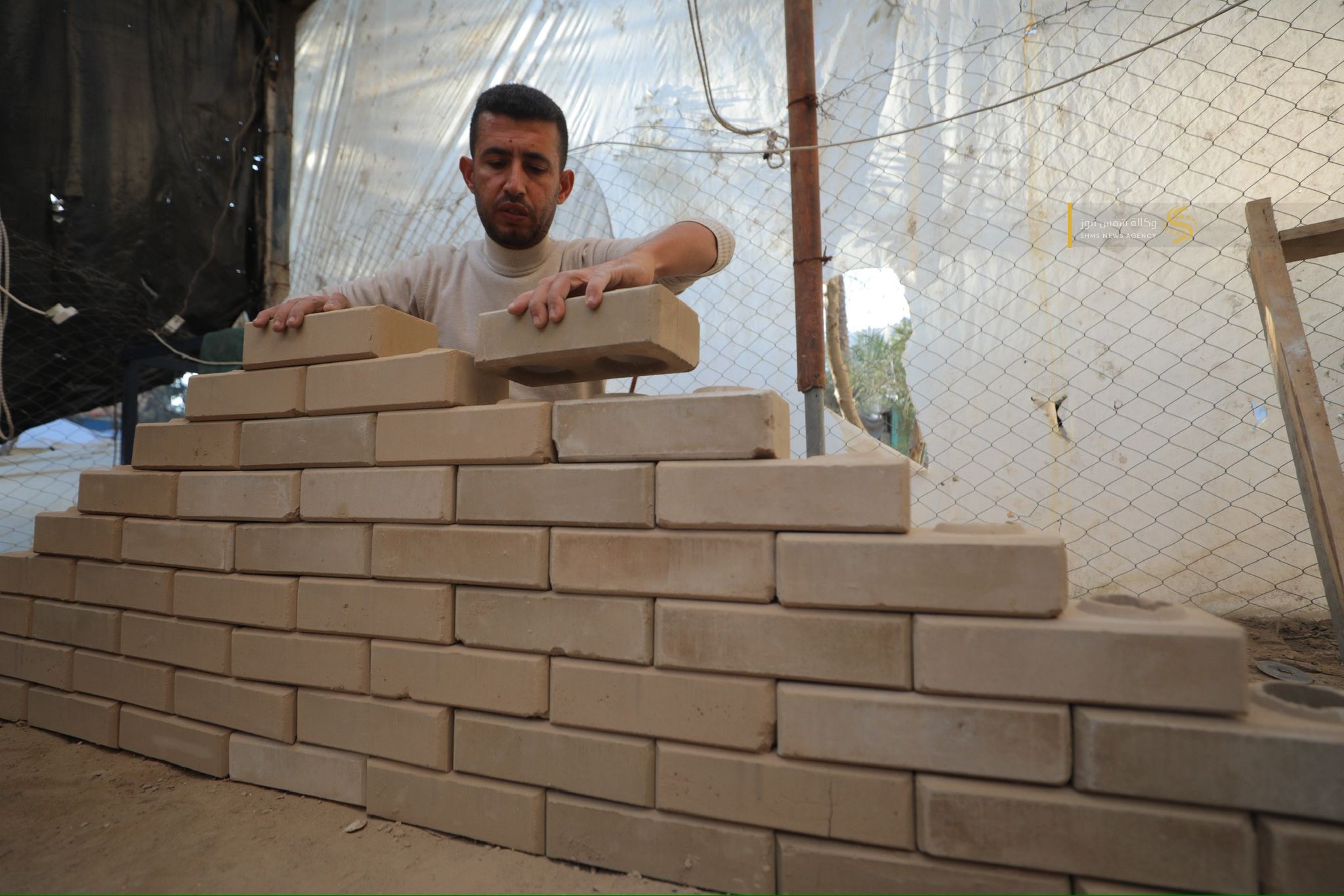 مواطنٌ غزي يُبدع في صناعة الطوب لتخفيف معاناة النازحين