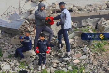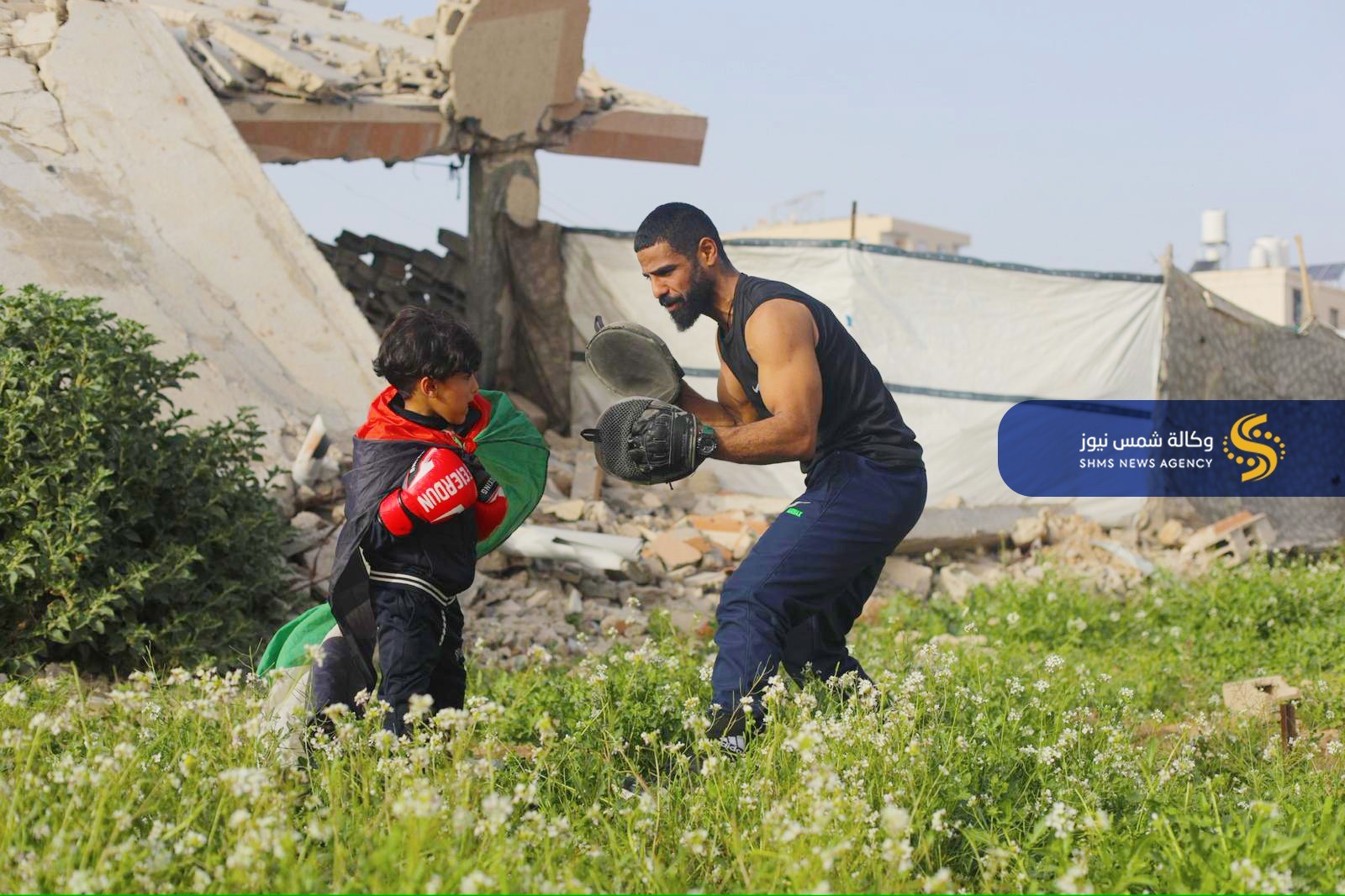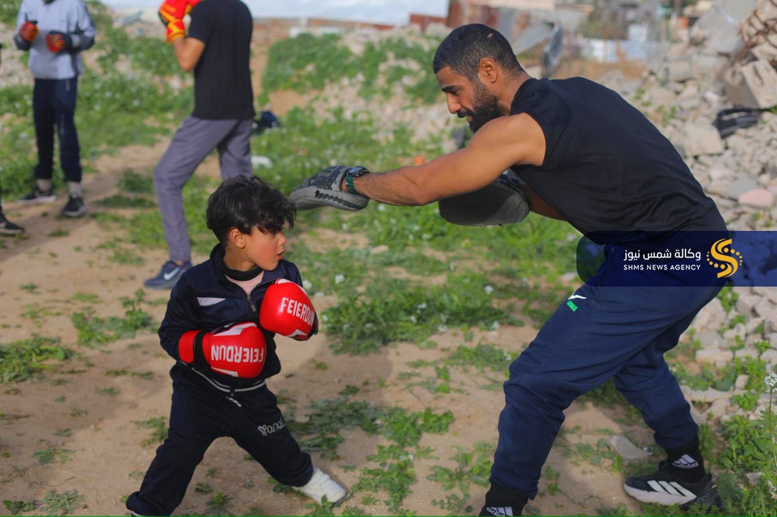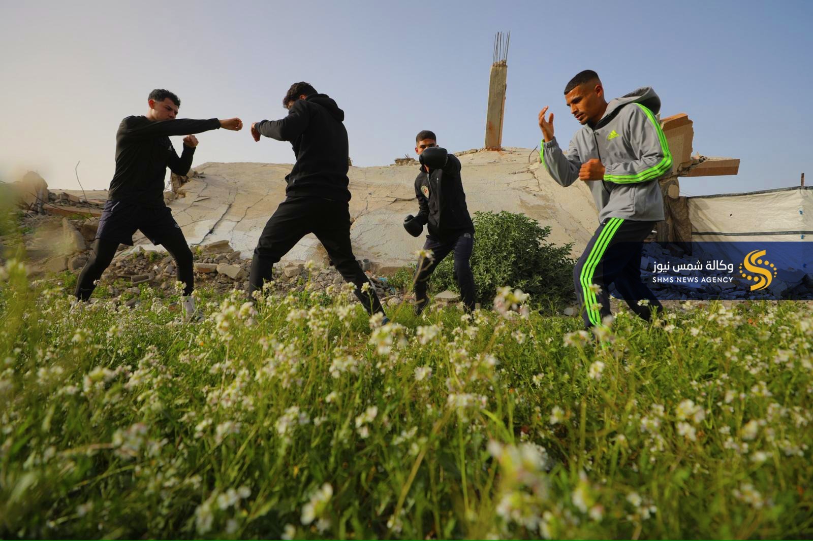 شبان فلسطينيون يمارسون رياضة الملاكمة بين أنقاض المباني المدمّرة في مدينة غزة