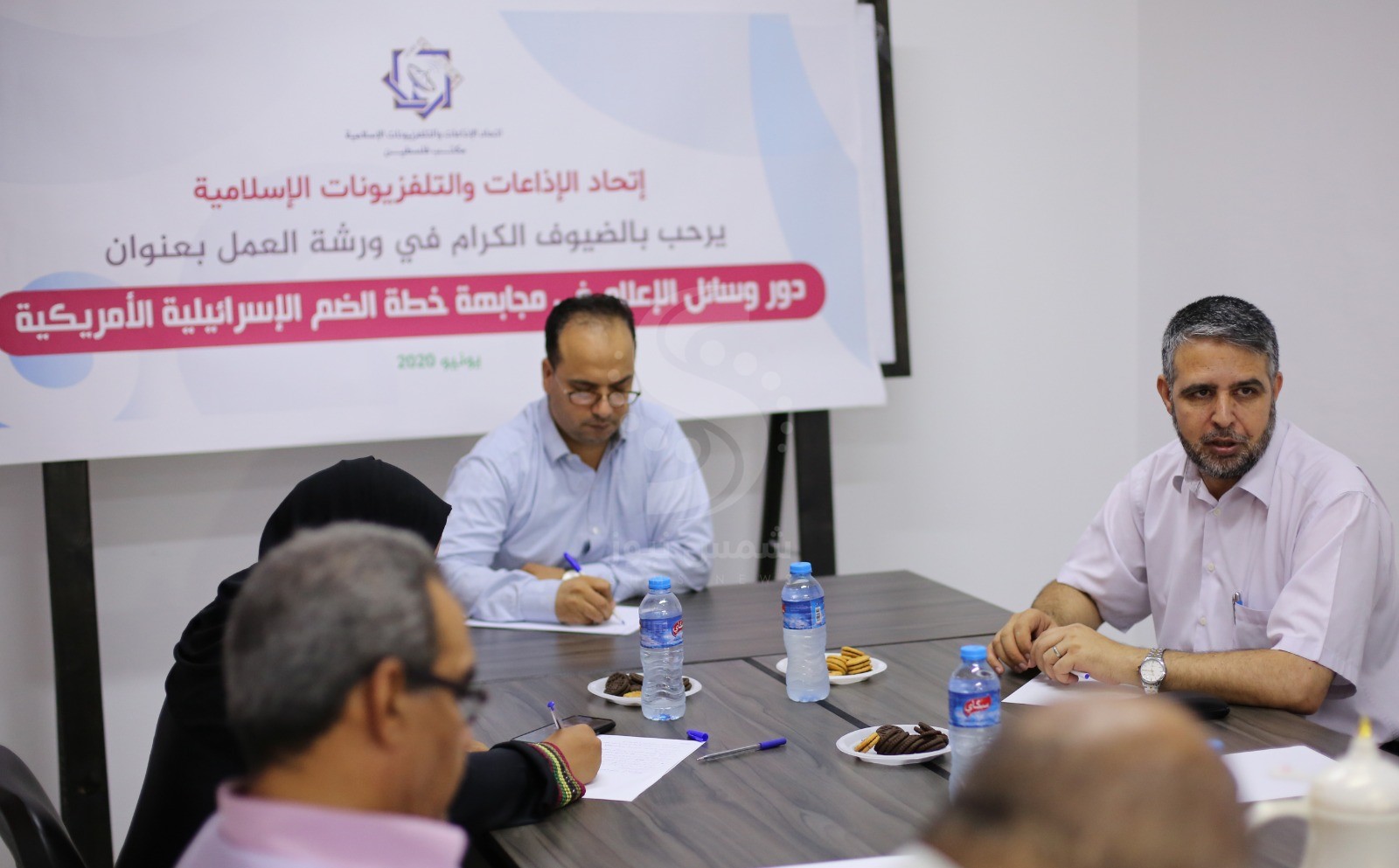 وأكد الإعلاميون، خلال ورشة عمل نظمها اتحاد الإذاعات والتلفزيونات الإسلامية، بعنوان :"دور وسائل الإعلام في مجابهة خطة الضم الإسرائيلية الأمريكية"، على أن "الضم" قضية اجماع وطني لا خلاف عليها وتستهدف الوجود الفلسطيني يجب العمل بشكل موحد لمواجهتها.