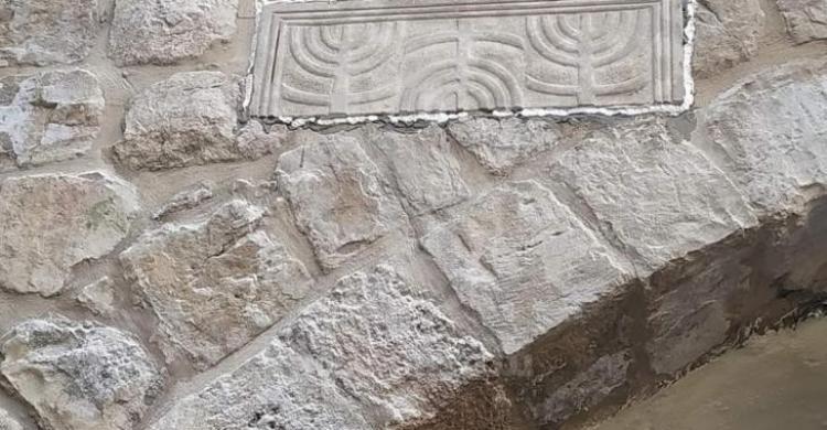وضع الاحتلال الاسرائيلي ومستوطنوه، اليوم الخميس، حجرا منقوشا عليه الشمعدان التلمودي على "قنطرة" أحد المباني بسوق القزازين في البلدة القديمة من مدينة الخليل.