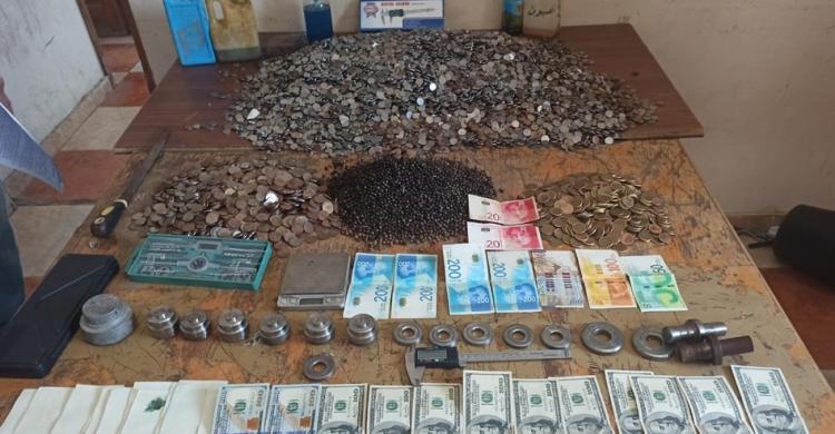 وتمكنت الشرطة من ضبط قرابة 50 ألف قطعة عملة معدنية مُزورة من فئة (1 شيكل) و(2 شيكل) داخل الورش المذكورة، كانت مُعدة للتداول في السوق المحلية، بالإضافة إلى ضبط 45 ورقة نقدية مزوّرة فئة 100 دولار أمريكي، بحوزة الأشخاص الموقوفين.