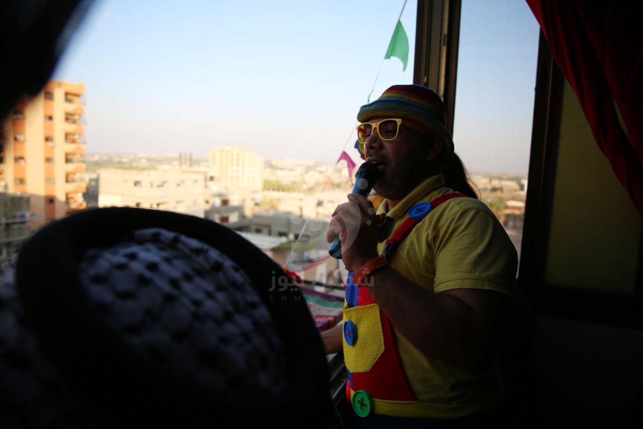 بعدسة "شمس نيوز": حكواتي غزة يُفرح الأطفال من "شباك الدار"