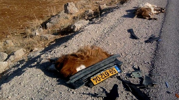دهس مستوطن إسرائيلي، مساء اليوم الأحد، قطيعًا من الأغنام في مسافر يطا جنوبي الخليل، جنوب الضفة المحتلة.