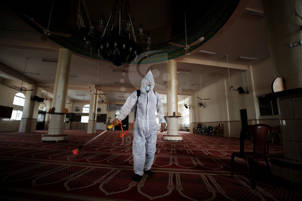 تعقيم مساجد غزة في ظل الحديث عن التحضير لإعادة فتحها أمام المصلين