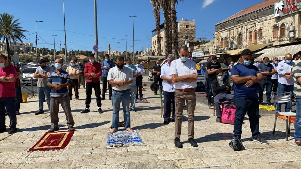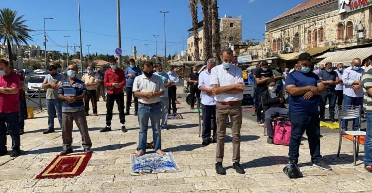 مقدسيون يؤدون صلاة الجمعة أمام باب العامود بعد منع الاحتلال لهم من دخول الأقصى