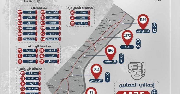 الخارطة الوبائية: غزة في الصدارة وتراجع جميع المحافظات