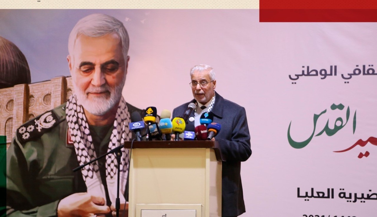 ولفت إلى أنَّ "كل من عرف وصاحب الشهيد يؤكد حجم إنسانيته ونبله وثقافته الدينية والجهادية العالية، والذي ينظر من خلالها إلى وحدة الأمة الإسلامية كلها تحت قيادة واحدة لتحرير القدس دون التعصب لاي مذهب من المذاهب أو عرق من الأعراق"، مستدركاً: "هذا هو شهيد القدس قاسم سليماني".