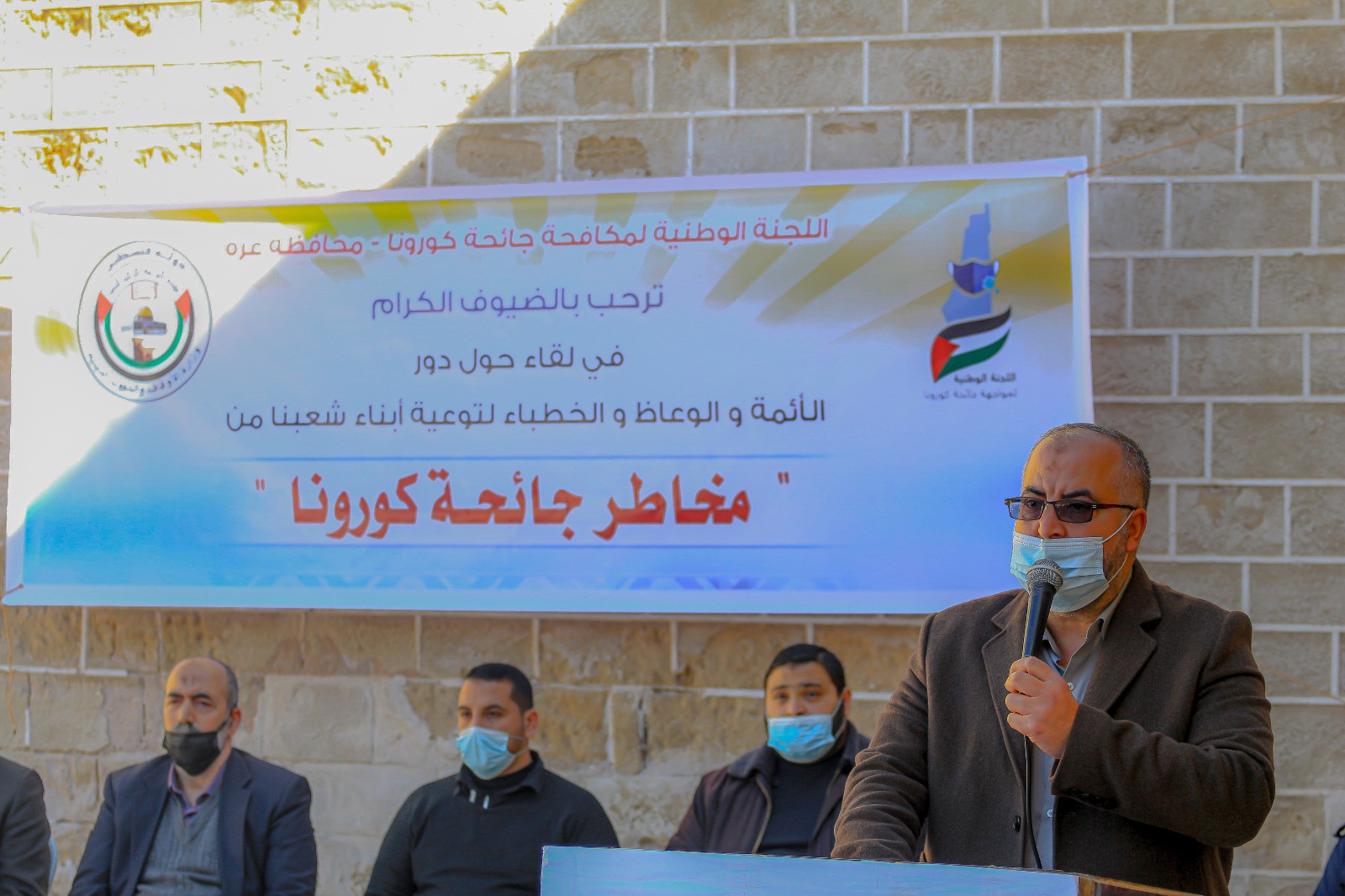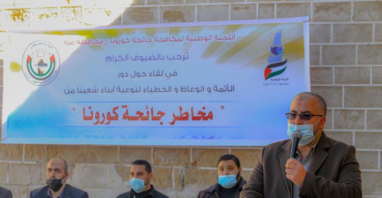 نظّمت اللجنة الوطنية لمواجهة جائحة كورونا وبالتعاون مع مديرية أوقاف محافظة غزة صباح اليوم الاثنين لقاءً لجميع الأئمة والوعاظ بمحافظة غزة في ساحة المسجد العمري.