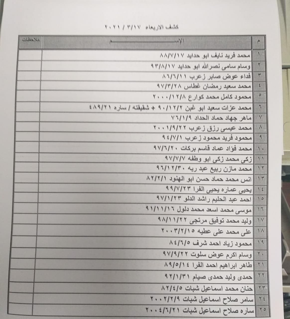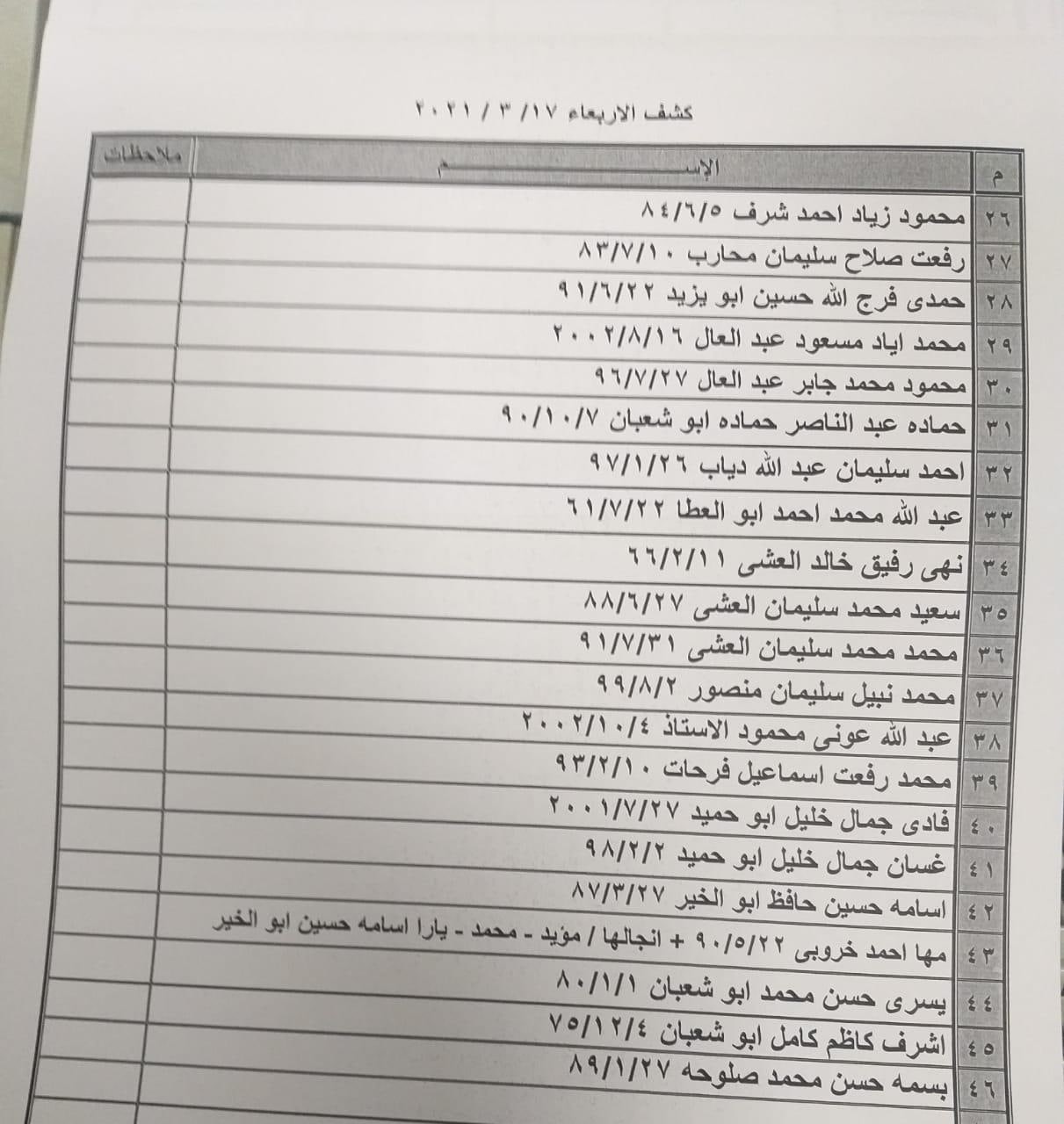 وأشارت الهيئة إلى أن الواردة أسماؤهم عليهم التوجه لإجراء فحص كورونا بدءاً من الساعة 9 صباح غد الثلاثاء في المراكز الصحية المعلن عنها مسبقاً في جميع المحافظات.