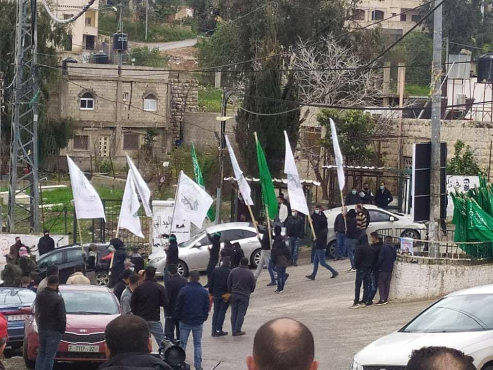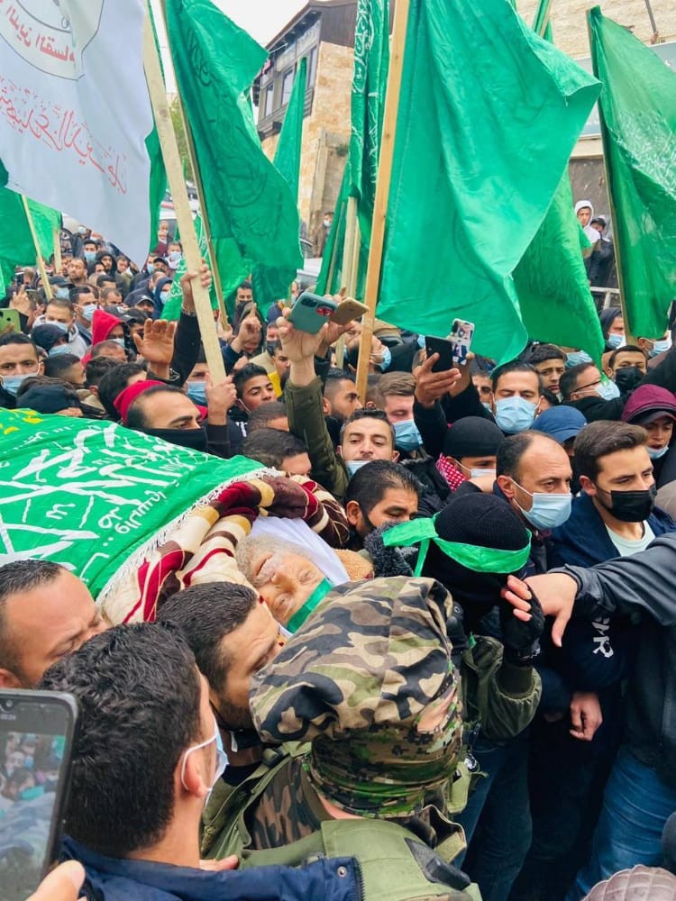 ولحظة وصول الجثمان، طافت مسيرات حاشدة شوارع القرية، بمشاركة نشطاء ملثمون في حماس، الذين رفعوا الأعلام الفلسطينية ورايات الحركة، وهتفوا بعبارات التكبير والتهليل وأشادوا بصبر وثبات البرغوثي.