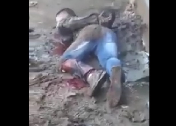 يسمع في الفيديو أصوات الطلقات النارية، وصوت المصور ،الذي يبدو أنه عربي، "طخوه.. بنزف عِدّوا مات" واصفا المشهد.