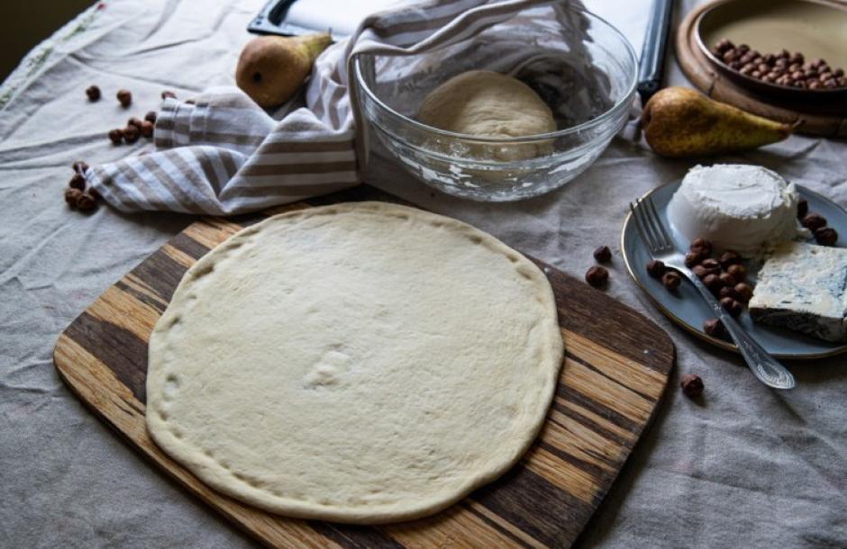 شكلي العجينة بعدها إلى كرة كبيرة قبل خبز البيتزا.
