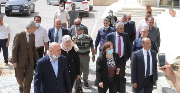وضم الوفد وزير الأشغال العامة والإسكان الدكتور محمد زيارة، ووزيرة الصحة الدكتورة مي الكيلة، ووزيرة شؤون المرأة الدكتورة آمال حمد، ووزير الحكم المحلي المهندس مجدي الصالح، ووزير الزراعة المهندس رياض العطاري.