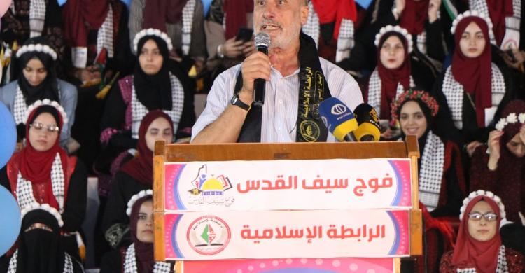 وفي كلمة حركة الجهاد الإسلامي أكد الدكتور جميل عليان أن العلم والوعي هما السلاح الأهم في مواجهة الاحتلال الإسرائيلي، وأن معركة شعبنا الممتدة على مدى سبعة عقود أنتم يا طلبة العلم من تحافظون عليها.