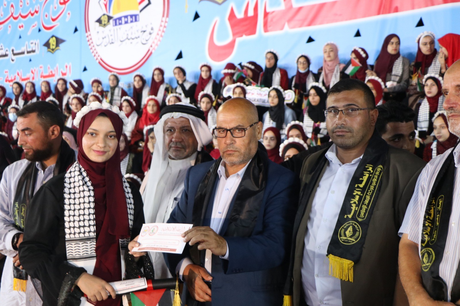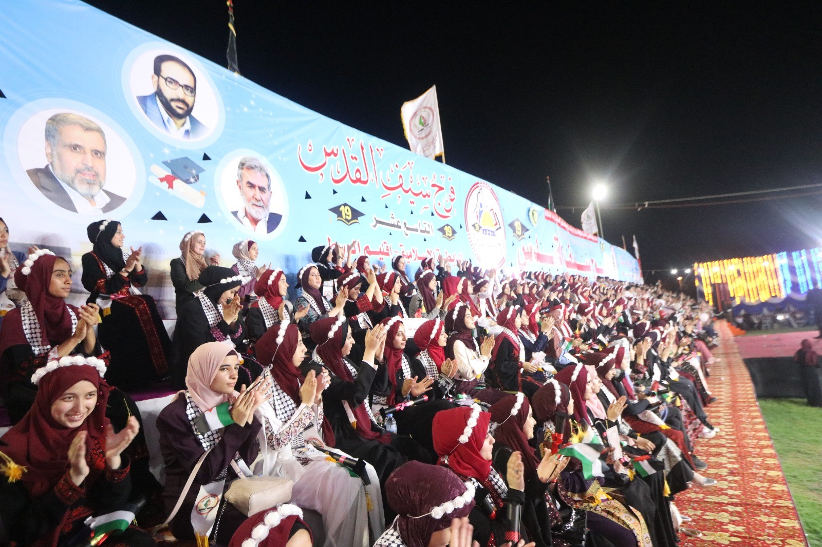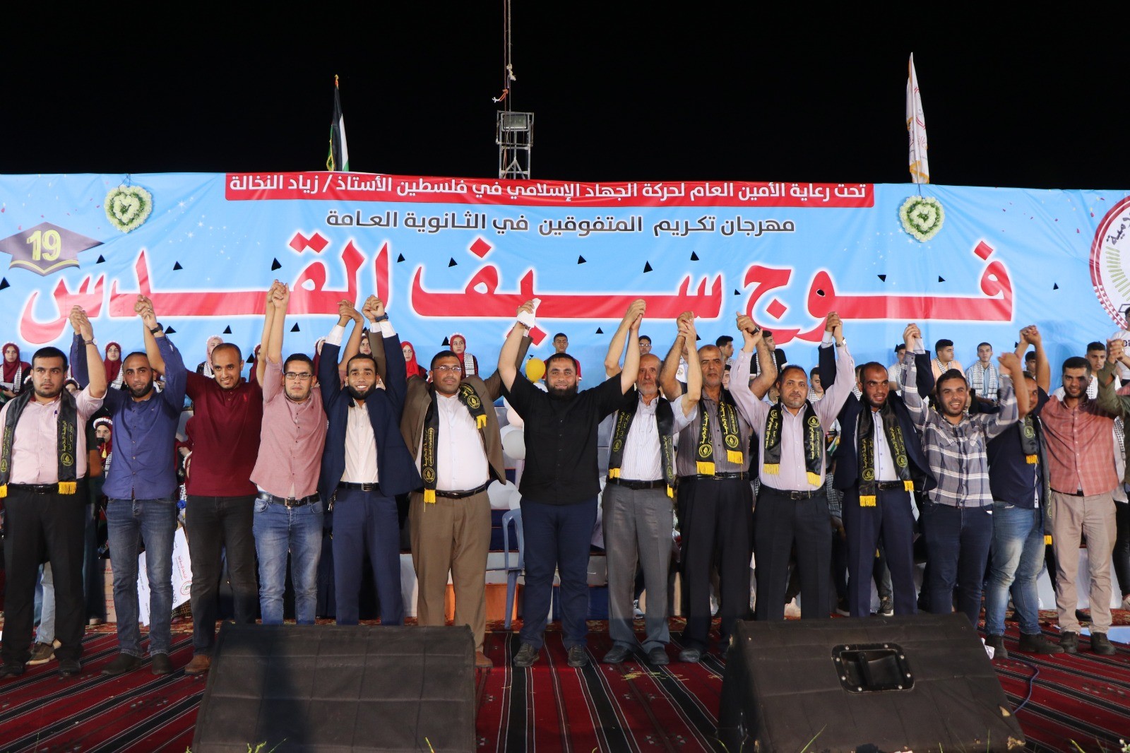 نظمت الرابطة الإسلامية الإطار الطلابي لحركة الجهاد الإسلامي في فلسطين، مساء الاثنين، مهرجاناً حاشداً لتكريم أوائل الثانوية العامة "فوج سيف القدس" وذلك في ملعب المصدر بدير البلح في المحافظة الوسطى
