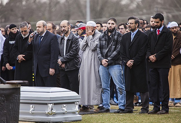 أدى مئات من المسلمين الأميركيين صلاة الجنازة على جثامين ضحايا جريمة قتل نفذها أميركي وراح ضحيتها ثلاثة طلبة جامعيين مسلمين من أبناء الجاليتين الفلسطينية والسورية بولاية كارولينا الشمالية.