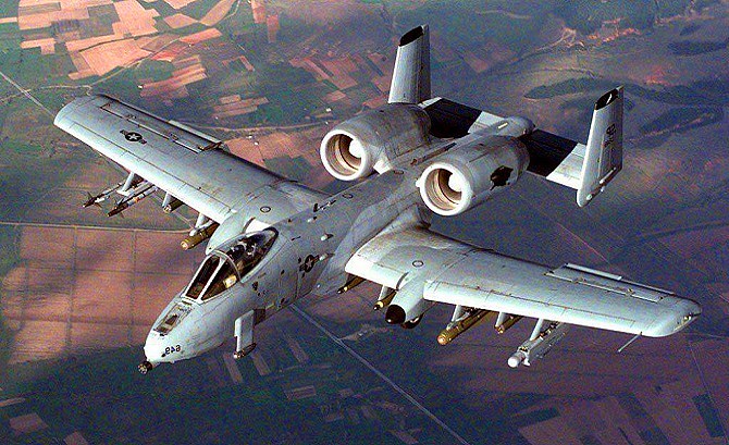 صممت طائرة "ثندربولتس أيه 10" – وتعرف أيضاً بلقب "الخنزير"  في بداية سبعينات القرن الماضي لتقديم الدعم الجوي القريب للقوات الأرضية ضد الدبابات والمدرعات، سلاحها الأساسي رشاش دوار يطلق 4 آلاف رصاصة في الدقيقة كافية لنسف دبابة، وهي مزودة بدروع لحمايتها من نيران الدفاعات الأرضية.