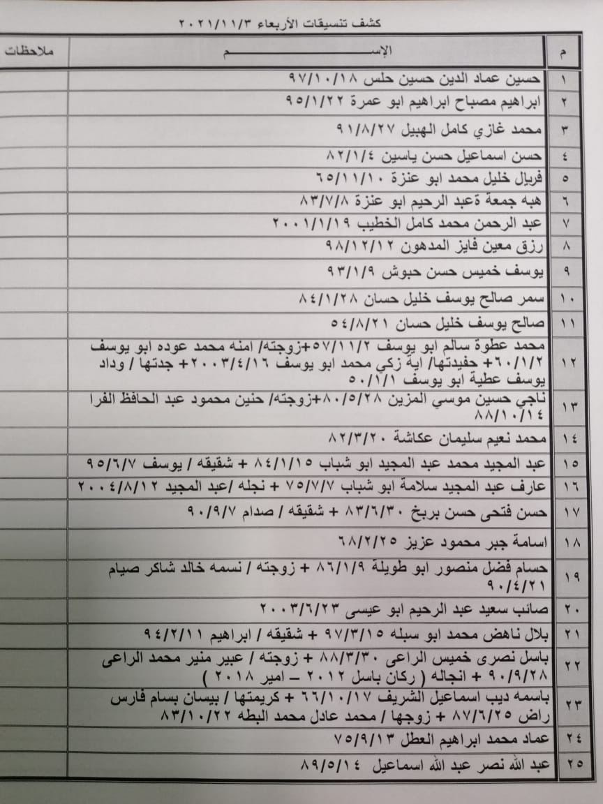 كما عليهم التواجد الساعة 6 صباح الأربعاء في الصالة الخارجية للمعبر لتسهيل سفرهم.
